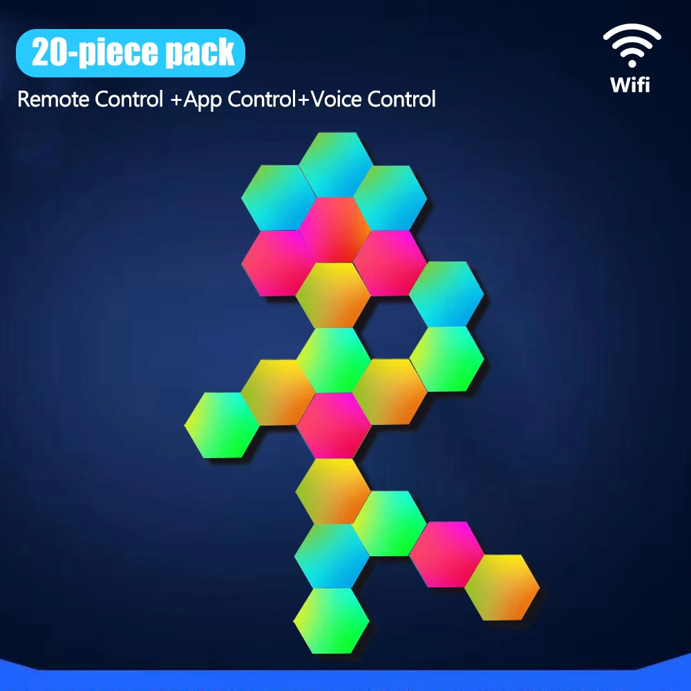 توفر الأضواء السداسية تجربة فريدة بإمكانية تشكيل التصميم بحرية وتثبيتها بسهولة على الجدران، مع دعم مزامنة الإيقاع الموسيقي لتجربة غامرة وحيوية. يمكن التحكم الكامل عبر التطبيق أو جهاز التحكم لتغيير الألوان وضبط السطوع والسرعة والمؤقت. تستخدم تقنية RGB المتقدمة لتوفير أكثر من 16 مليون لون نابض بالحياة تمنح أجواء أنيقة وممتعة مثالية للتجمعات أو جلسات الترفيه في المنزل.