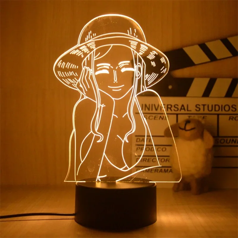 مصباح LED ثلاثي الأبعاد بتصميم لوفي وزورو وآيس من أنمي ون بيس يضيء بإضاءة مبهرة تضيف أجواء حماسية لغرفة النوم أو المكتب ويعد قطعة ديكور مثالية لعشاق الأنمي